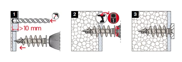 - Time-saving without pre-drilling in thin plaster layers